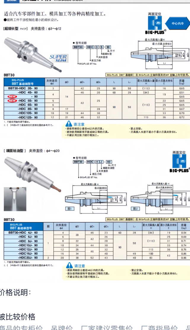 日本BIG大昭和BBT40-HDC20-90液压刀柄高精度加工中心数控刀柄